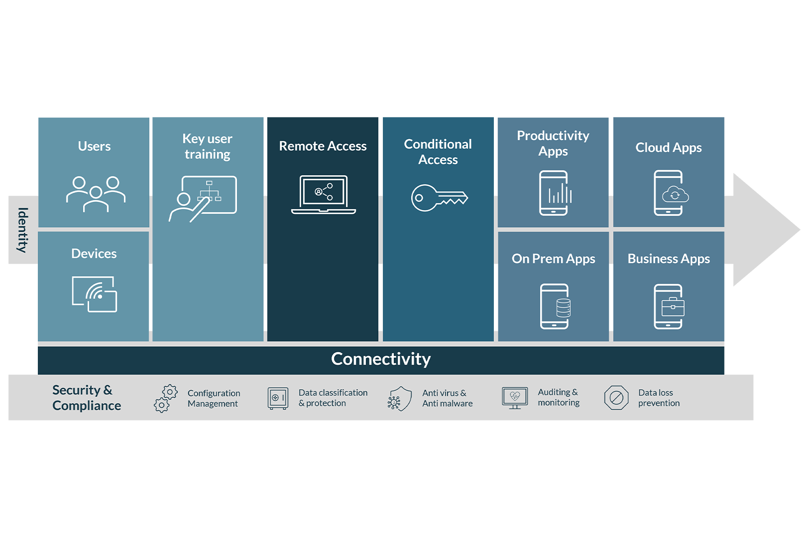 To support you in creating or updating a high-quality IT environment, we offer a framework of IT solution blocks based on Big Tech where possible, and self-developed where necessary: the Itility IT Foundation